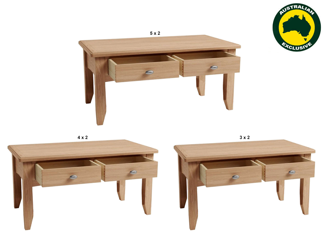 FABULOS (AUSSIE MADE) 2 DRAWER COFFEE TABLE COLLECTION - ASSORTED STAINED COLOURS - STARTING FROM $799