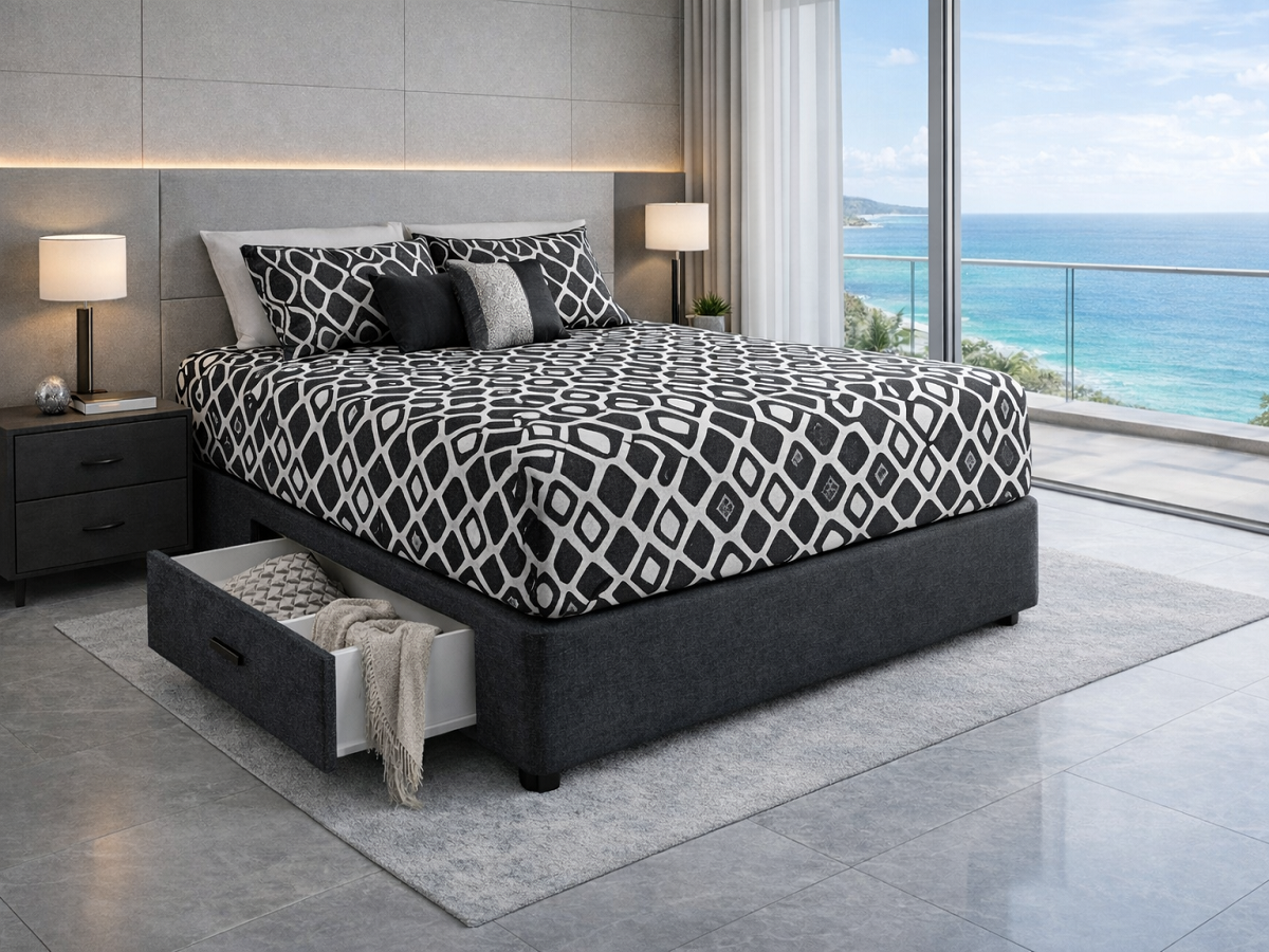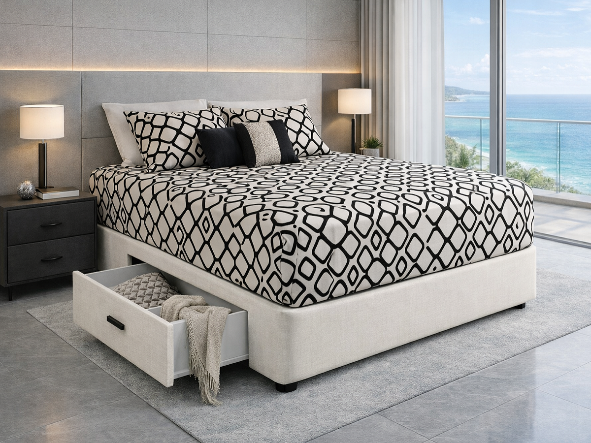 BASE SIZE: Assorted sizes. CONSTRUCTION: Timber slatted platform base system. BASE THICKNESS: 12''/300mm (excluding wheels / castors) / 340mm (including wheels / castors / timber legs ). COLOURS: Select from above available colour options.FEATURES: ORIGIN: Made in Australia. GUARANTEE: 10 year guarantee. PACKAGING: Heavy duty plastic.