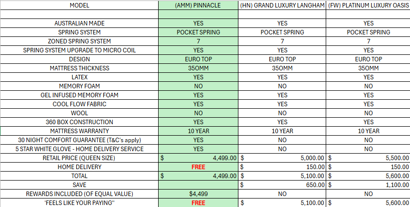 (AMM) PINNACLE / (HN) GRAND LUXURY LANGHAM / (FW) PLATINUM LUXURY OASIS EURO TOP + LATEX + GEL INFUSED MEMORY FOAM + COOL FLOW FABRIC - FIRM / MEDIUM / PLUSH - STARTING FROM $2999 (AMM) PINNACLE / (HN) GRAND LUXURY LANGHAM / (FW) PLATINUM LUXURY OASIS EURO TOP + LATEX + GEL INFUSED MEMORY FOAM + COOL FLOW FABRIC - FIRM / MEDIUM / PLUSH - STARTING FROM $2999 (AMM) PINNACLE / (HN) GRAND LUXURY LANGHAM / (FW) PLATINUM LUXURY OASIS EURO TOP + LATEX + GEL INFUSED MEMORY FOAM + COOL FLOW FABRIC - FIRM / MEDIUM / PLUSH - STARTING FROM $2999 (AMM) PINNACLE / (HN) GRAND LUXURY LANGHAM / (FW) PLATINUM LUXURY OASIS EURO TOP + LATEX + GEL INFUSED MEMORY FOAM + COOL FLOW FABRIC - FIRM / MEDIUM / PLUSH - STARTING FROM $2999 (AMM) PINNACLE / (HN) GRAND LUXURY LANGHAM / (FW) PLATINUM LUXURY OASIS EURO TOP + LATEX + GEL INFUSED MEMORY FOAM + COOL FLOW FABRIC - FIRM / MEDIUM / PLUSH - STARTING FROM $2999 SEASIDE (AUSSIE MADE) BEDSIDE TABLE COLLECTION - ASSORTED STAINED COLOURS - STARTING FROM $399