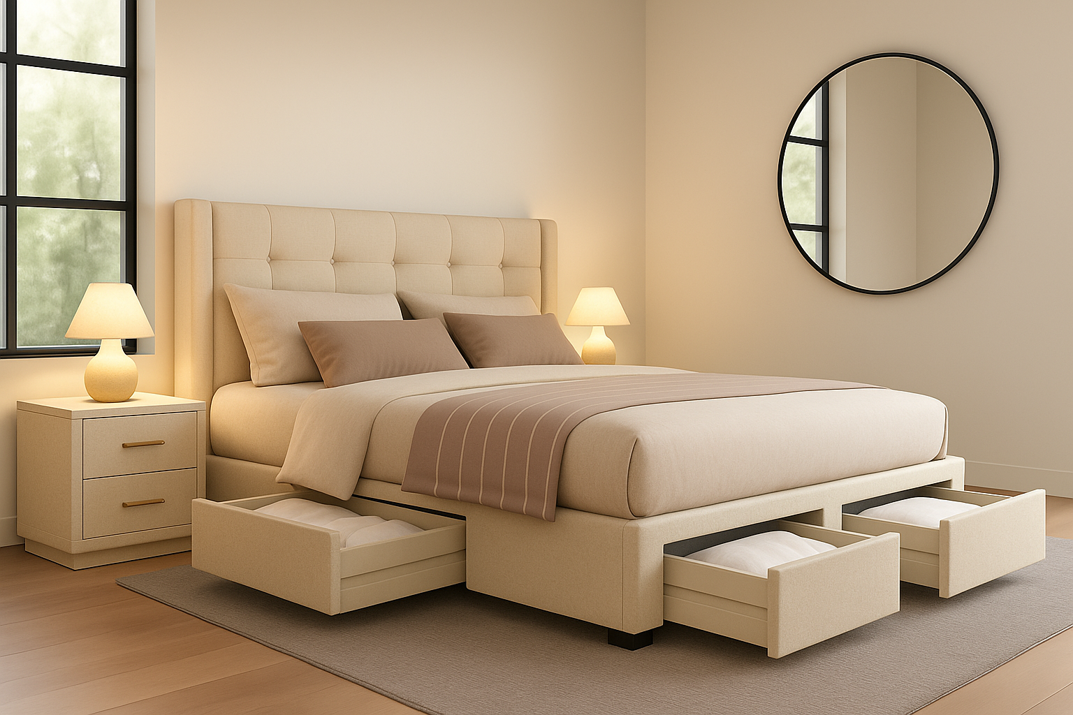 The Jessica Upholstered Bedroom Collection with Storage is proudly Aussie Made, combining sophisticated design, superior comfort, and clever functionality. Featuring a beautifully upholstered frame with integrated under-bed storage, Jessica is the perfect blend of style and practicality—ideal for modern Australian homes.