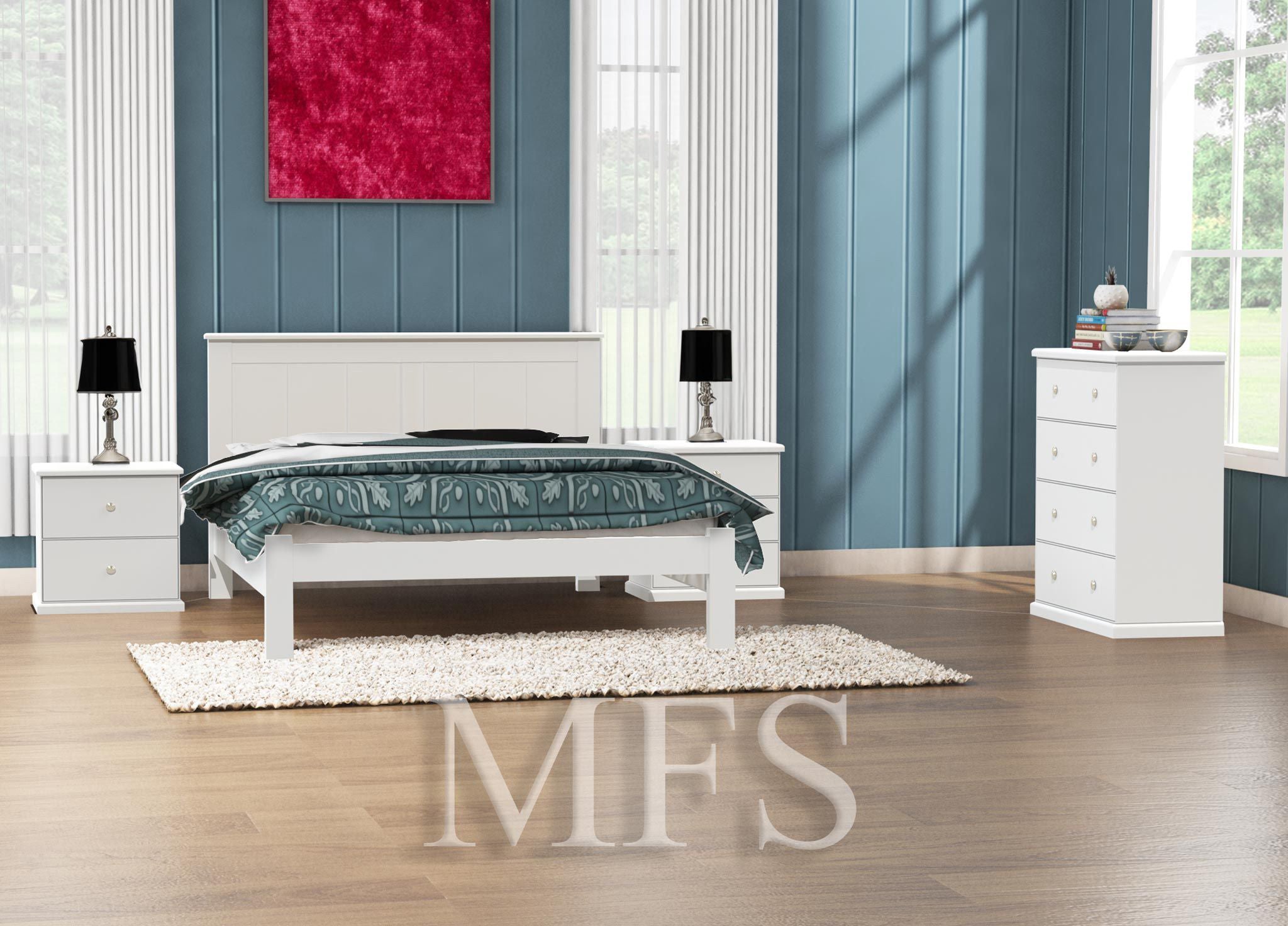 COLOUR: White. MATTRESS SIZE: Accommodates standard king single mattress. MATERIAL: Solid Timber. FEATURES: ORIGIN: Imported. GUARANTEE: 12 month manufacturer's warranty. PACKAGING: Bed is flat-packed for easy assembly - delivery. CLEANING: Wipe clean with a damp / dry cloth.