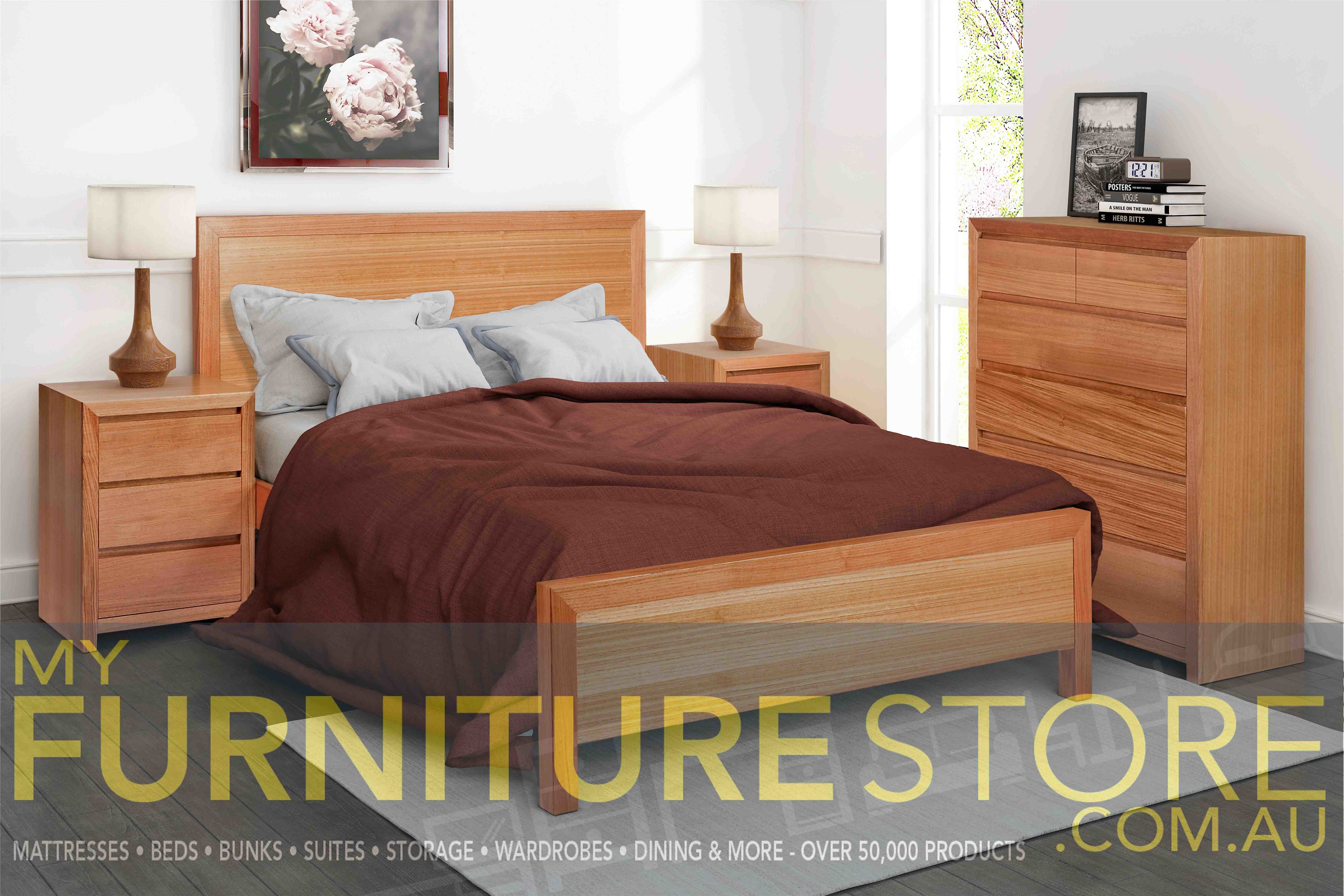 LISTING CONSISTS OF: 1 x King Bed , 2 x Bedsides , 1 x Tallboy , 1 x Dresser , 1 x Mirror.