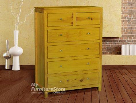 SIZE: 1200(H) x 900(W) x 450(D). COLOUR: Select from available colour options above. MATERIAL: Solid Timber. FEATURES: - Metal runners on all drawers. ORIGIN: Australian made. GUARANTEE: 12 month manufacturer's warranty. PACKAGING: Fully assembled. CLEANING: Wipe clean with a damp / dry cloth.