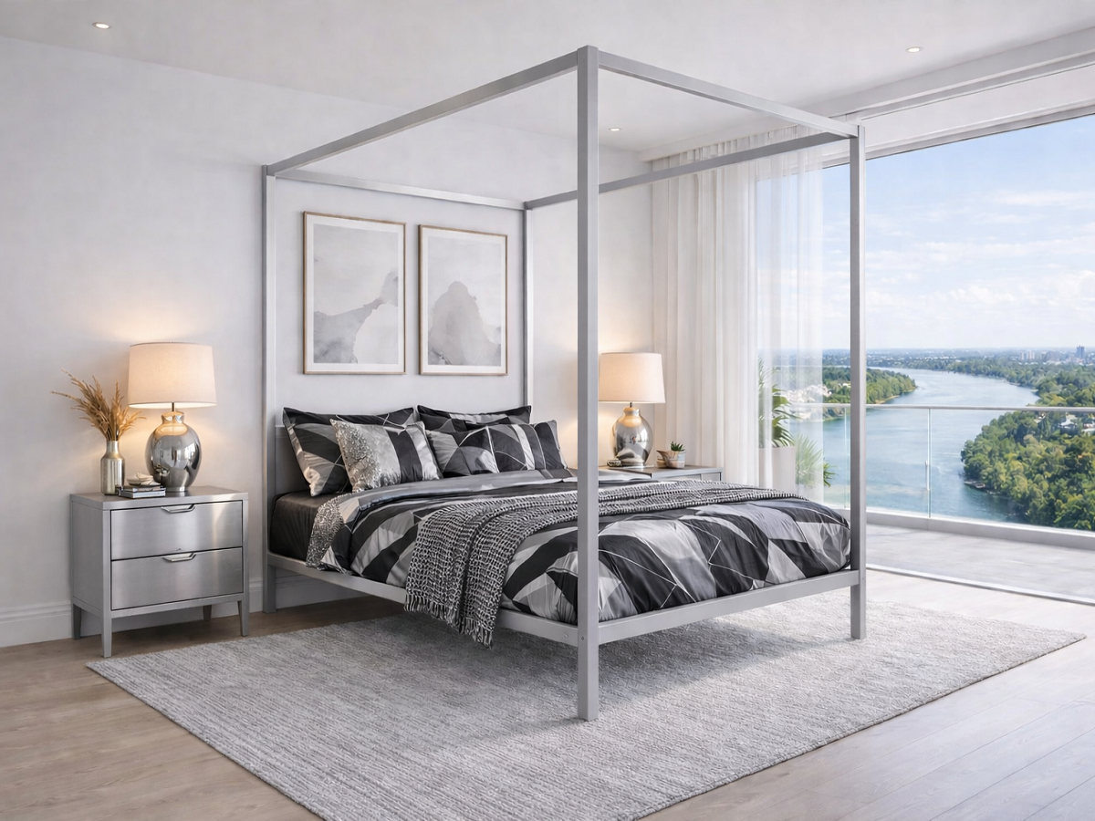 Bring a sense of luxury and calm into your bedroom with the Nusa 4 Poster Bed — proudly Australian made and designed to create a stunning centrepiece in any modern home. With its clean structure and elegant four-poster frame, this bed adds height, balance, and a refined presence without feeling heavy or overpowering.