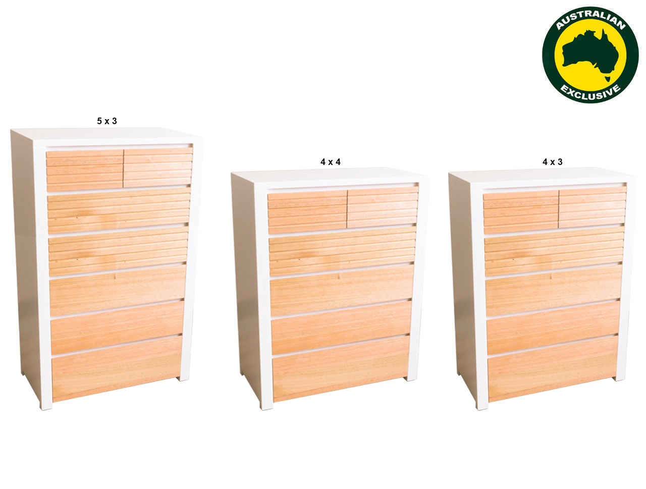 • Collections: BROWN TIMBER TALLBOYS, TALLBOY / NARROWBOY / LOWBOY CHESTS - ALL STYLES, TALLBOYS (AUSSIE MADE), WHITE TIMBER TALLBOYS