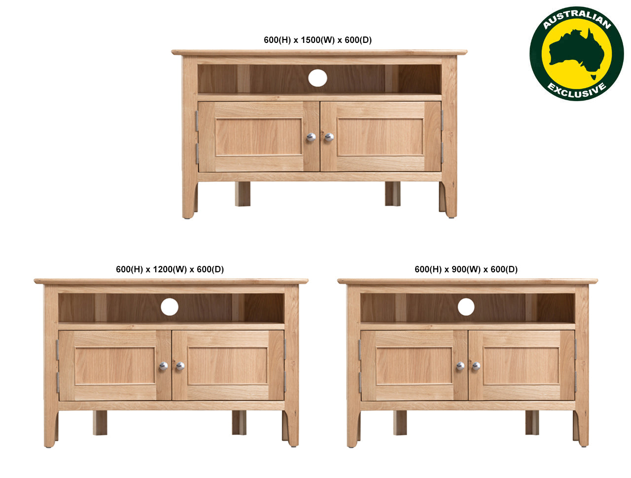 DIMENSION: CUSTOM MADE to any size (additional fees may apply). COLOUR: Assorted stained colours. MATERIAL: Hardwood Tasmanian Oak / Tassie Oak veneer / Solid timber combination. FEATURES: ORIGIN: Made in Australia. GUARANTEE: 12 month manufacturer's warranty. PACKAGING: Fully assembled. CLEANING: Wipe clean with a damp / dry cloth.