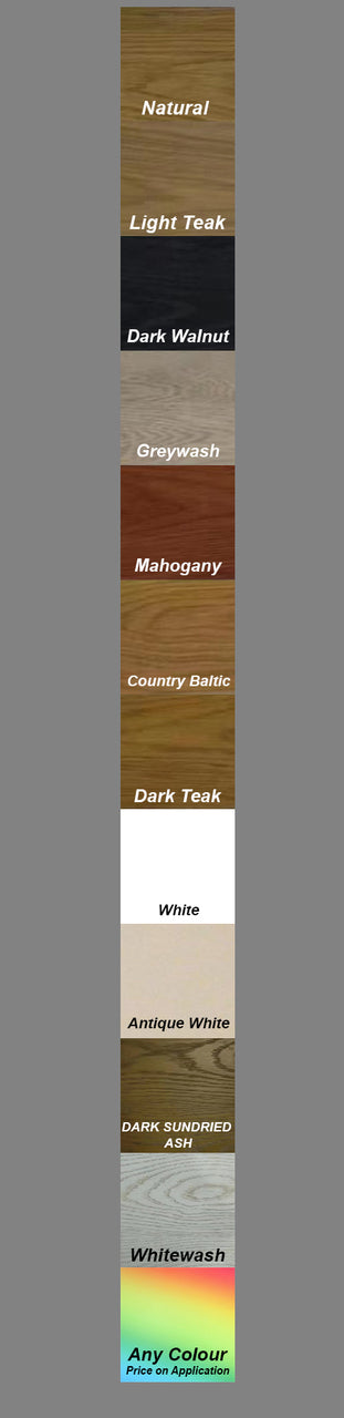 COLOUR: Assorted Colours. DIMENSIONS: 1128(H) x 2030(W) x 1030(D).MATERIAL: Solid Timber. FEATURES:ORIGIN: Imported.GUARANTEE: 12 month manufacturer's warranty. PACKAGING: Flat packed for easily assembly. CLEANING: Wipe clean with a damp/dry cloth.